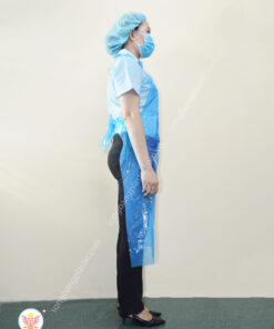 Tạp dề PE dùng một lần được sử dụng rộng rãi trong ngành sản xuất thực phẩm, nhà bếp, siêu thị và một số ngành công nghiệp chống tự do, rẻ và dễ kiếm, tất cả đều được làm bằng màng PE, dễ dàng sản xuất.